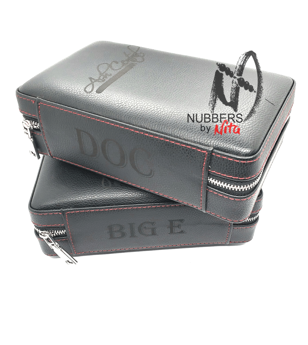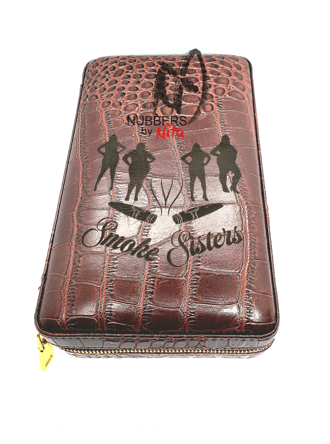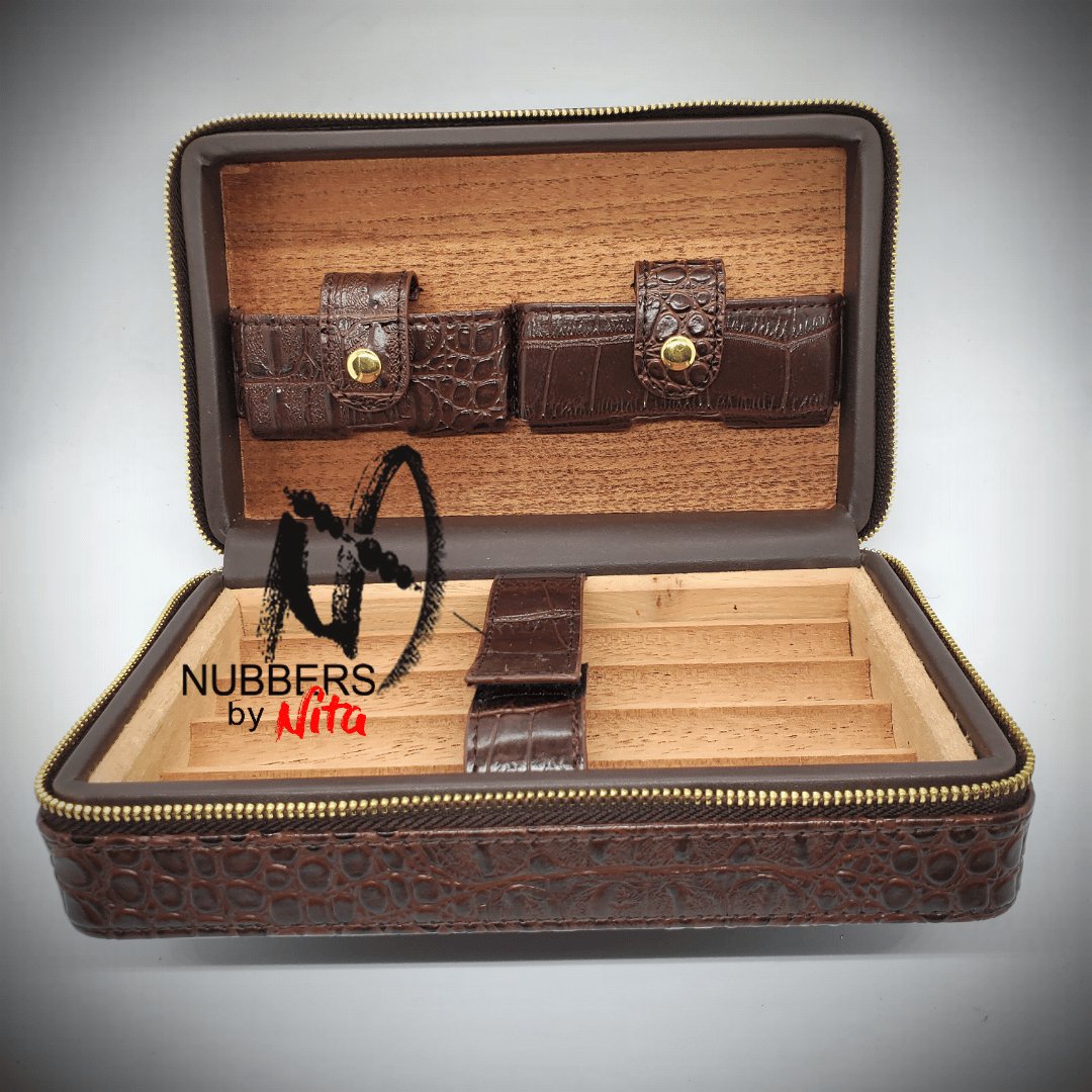 Make a true statement with these customizable travel humidors. Available in black or crocodile print brown. These cases can hold up to 5 cigars, a cutter and torch making it easy to grab and go.